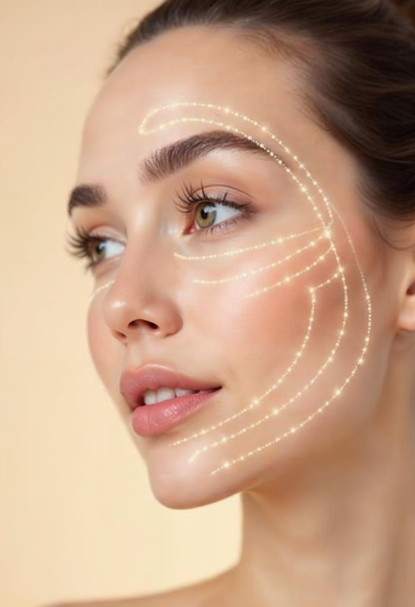 - Verbesserung der Gesichtskonturen, z. B. Kieferlinie, Wangen und Augenbrauen.
